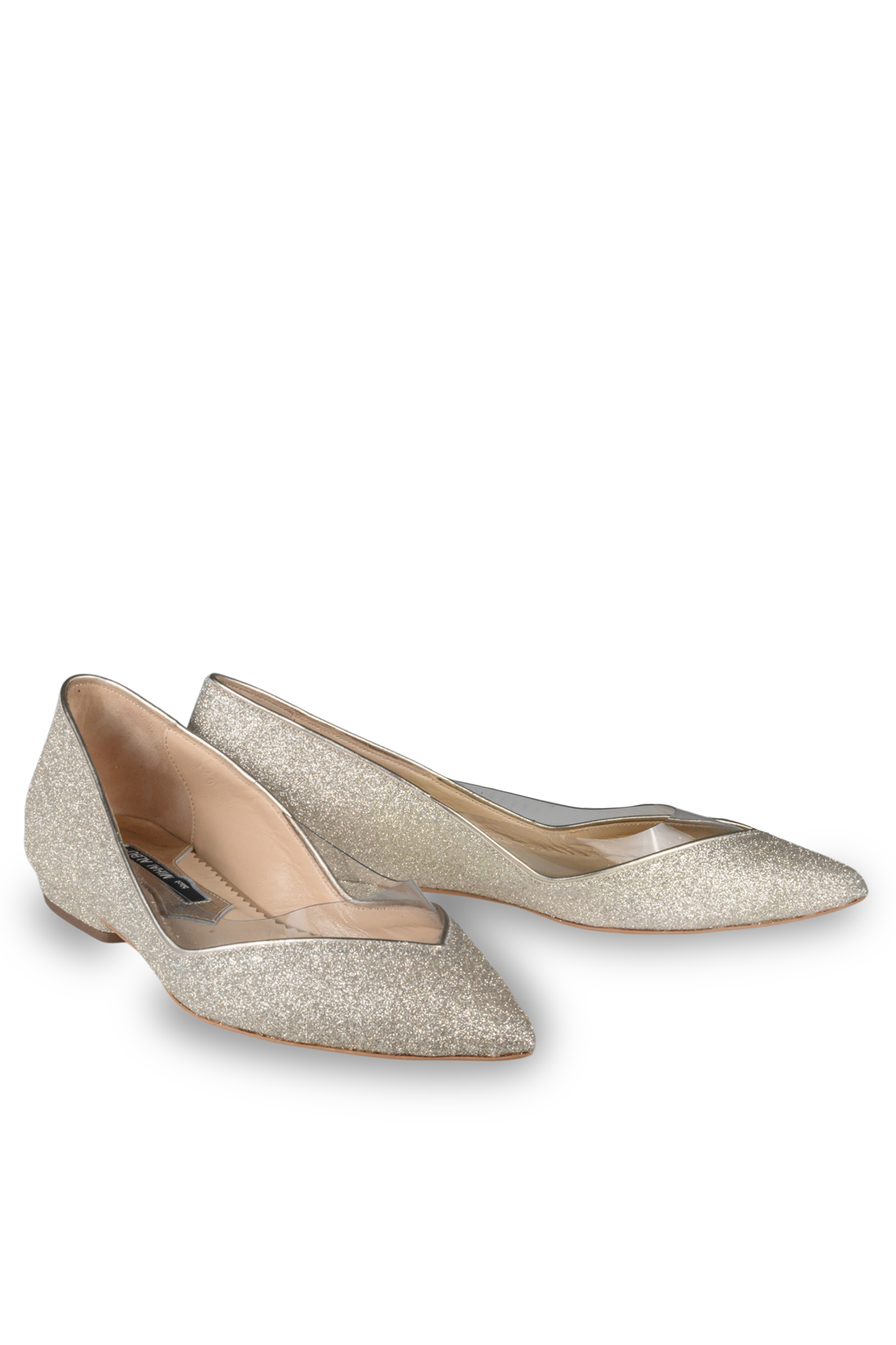 Shine on, you crazy diamond, in a pair of luxury, gold-tinted flats that will bring out your inner sparkle. It takes a true fashionista to have the courage to direct all eyes upon herself. You are it.