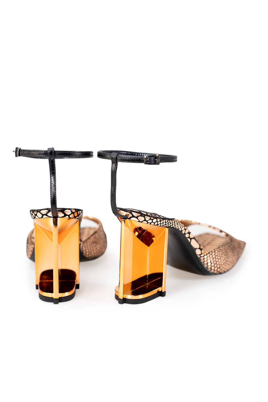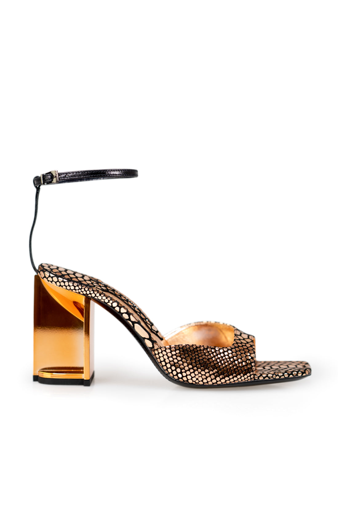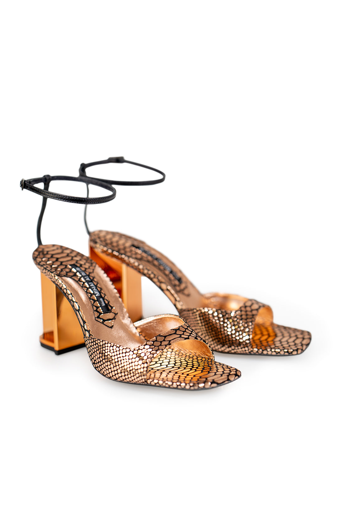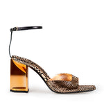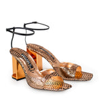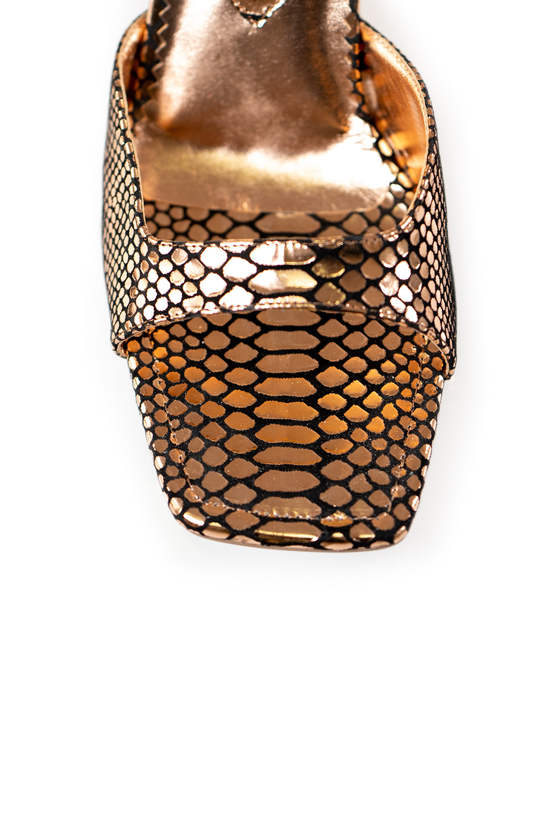 Textures that mimic reptile skin are recurring in fashion. One more reason to imagine yourself in a pair of Slither sandals, with a comfortable heel that allows you to walk lightly, but with an extravagant look, which compliments a balanced outfit, for an edgy result.
