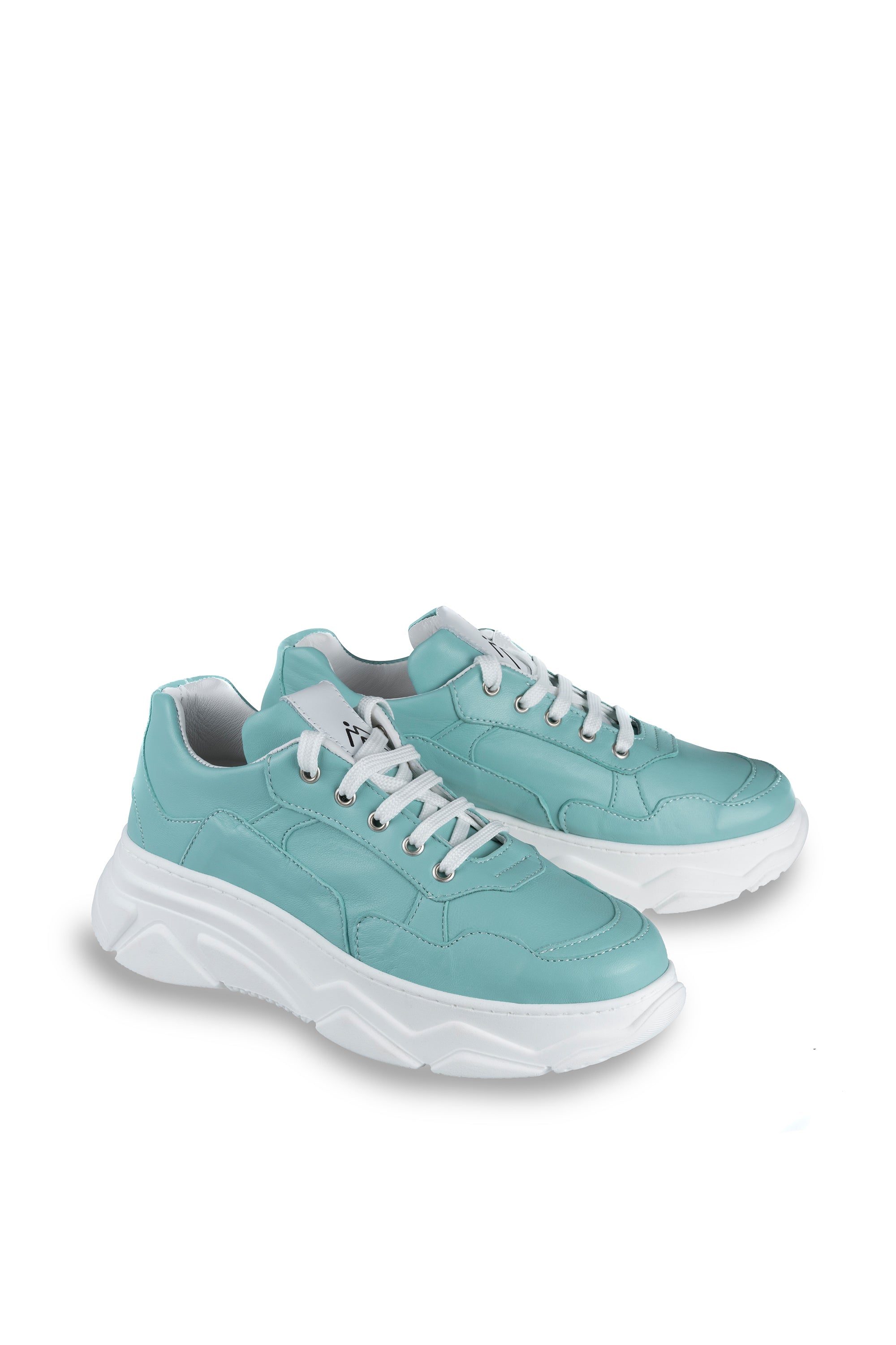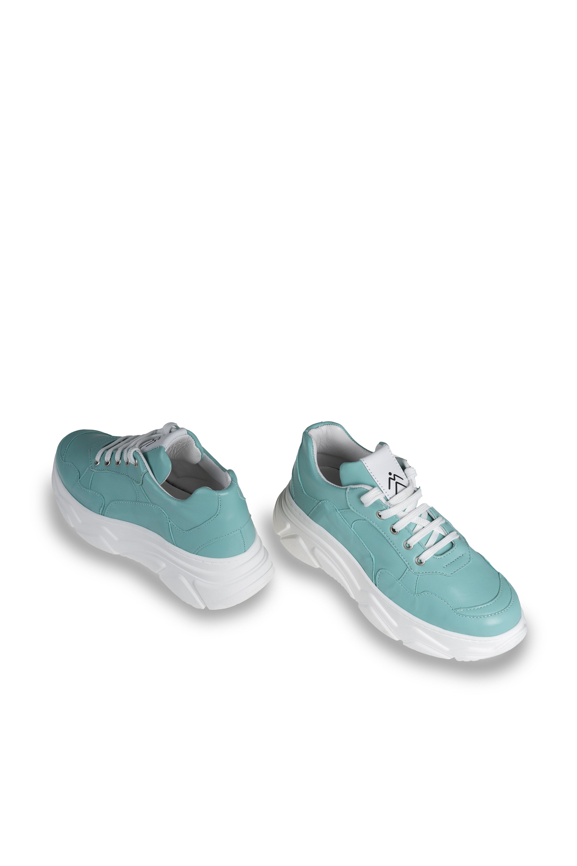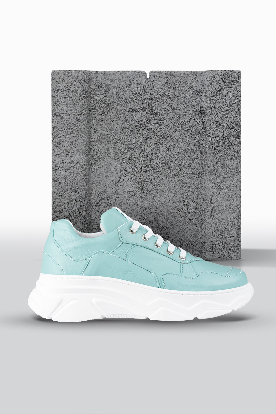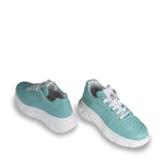 Realizați din piele și spumă, acest model de sneakers combină cea mai reconfortantă nuanță de turcoaz cu albul imaculat, lăsând sigla MIKA plasată pe limba pantofului să iasă în evidență.