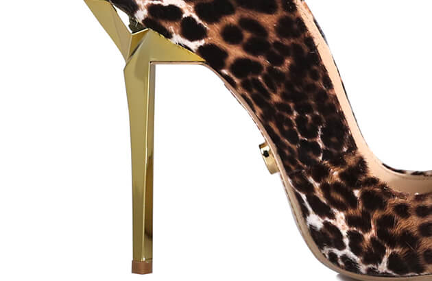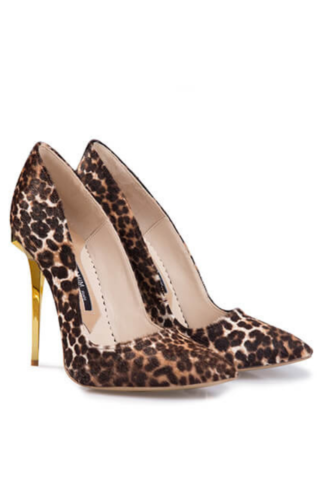 Pantofii din piele ponei, inspirați de leopardul de Amur, sunt o interpretare modernă a sălbăticiei care se îmbină cu o arhitectură urbană extravagantă.
