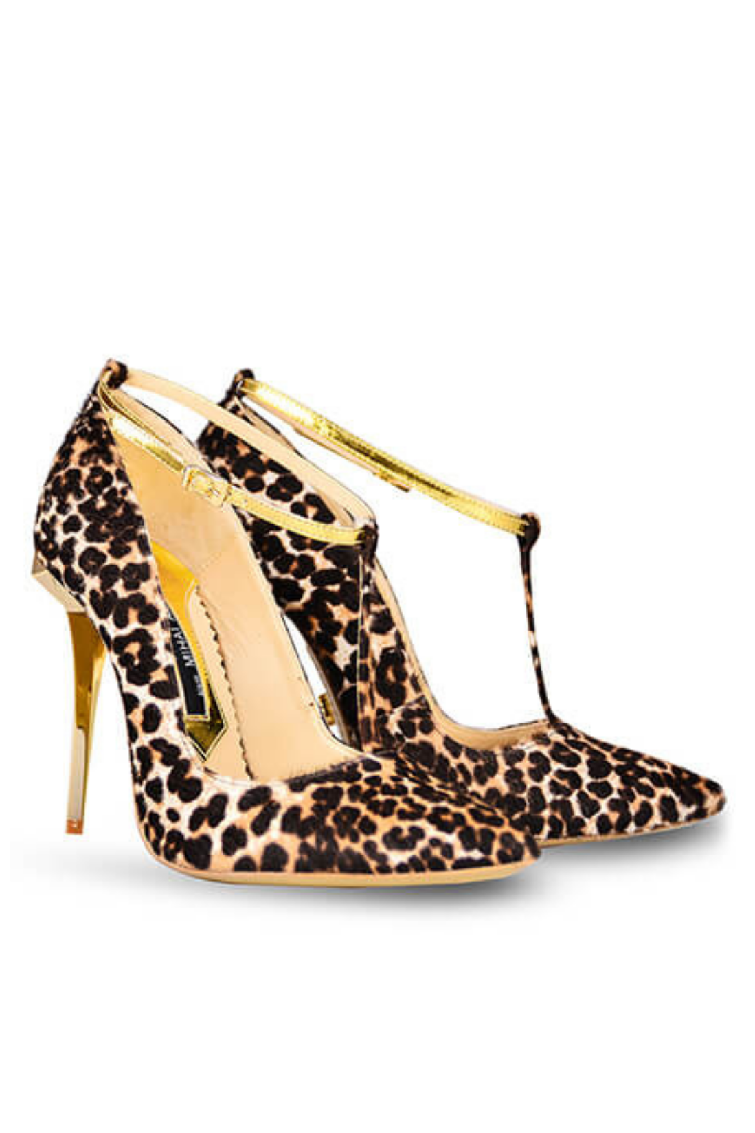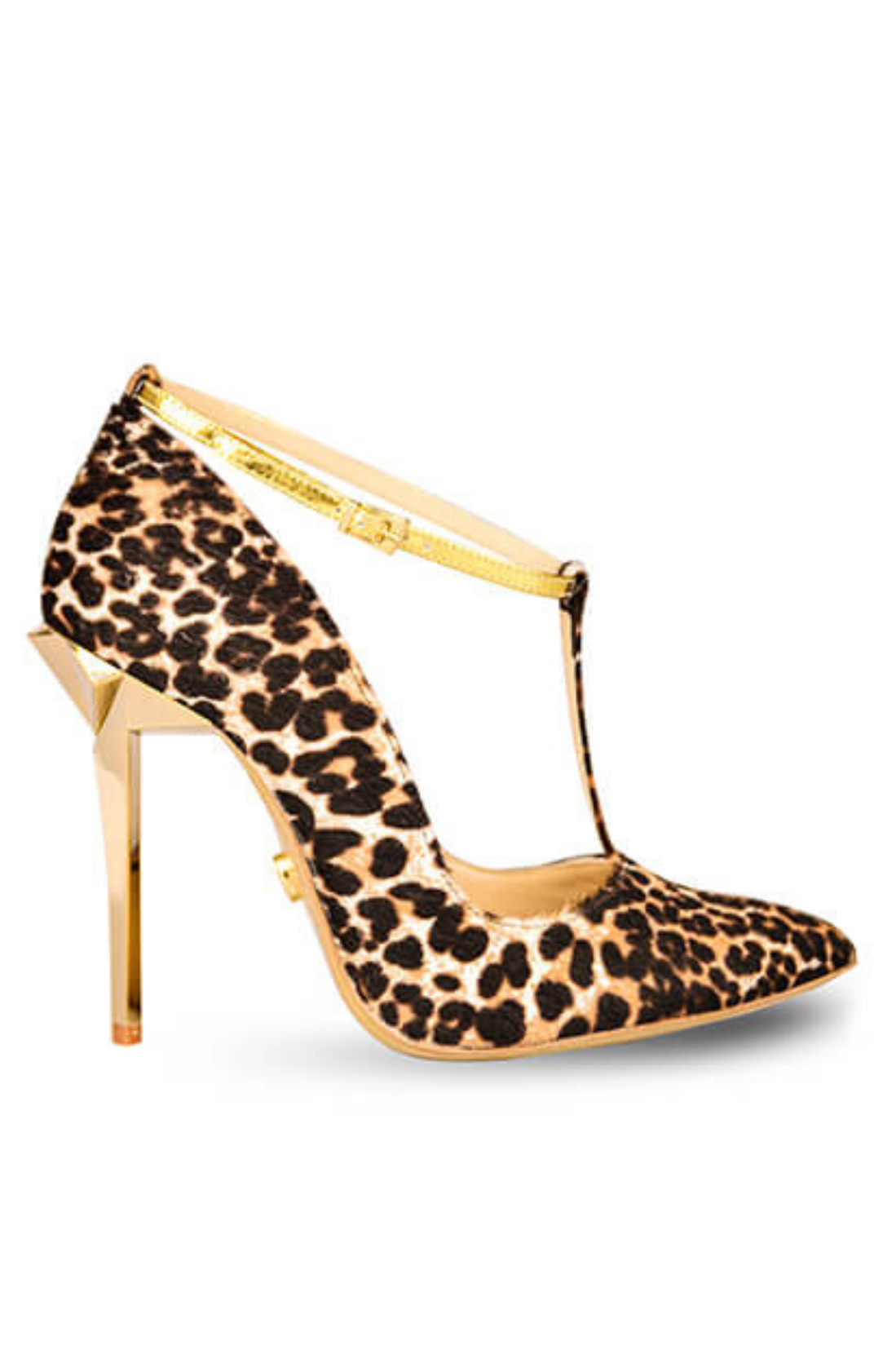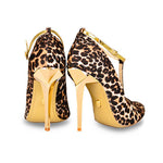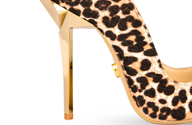 Pantofii din piele ponei, inspirați de leopardul de Amur, sunt o interpretare modernă a sălbăticiei care se îmbină cu o arhitectură urbană extravagantă.