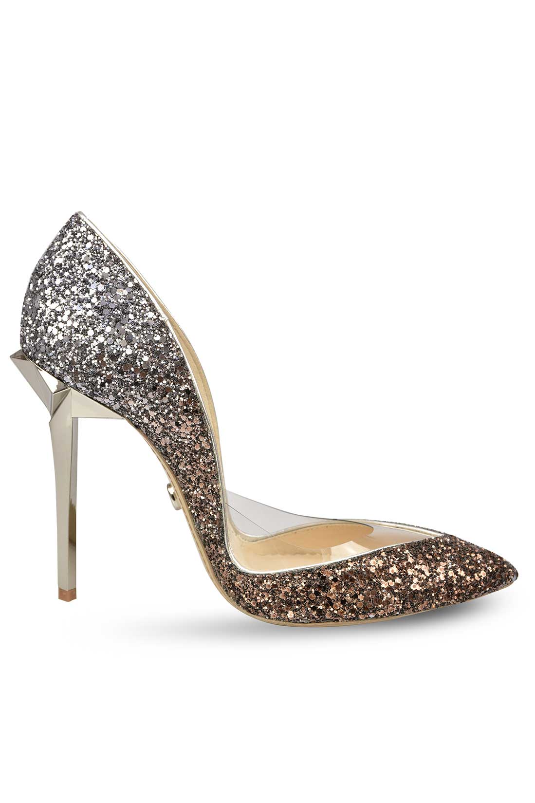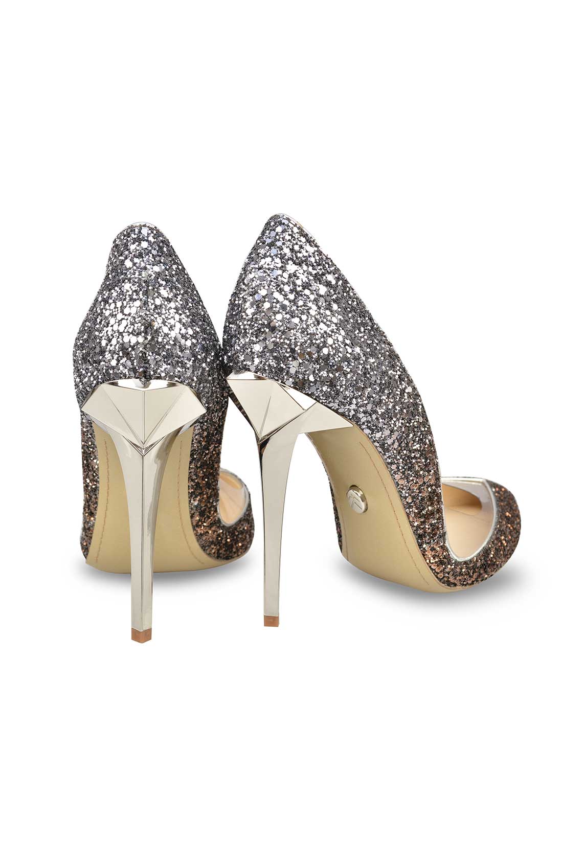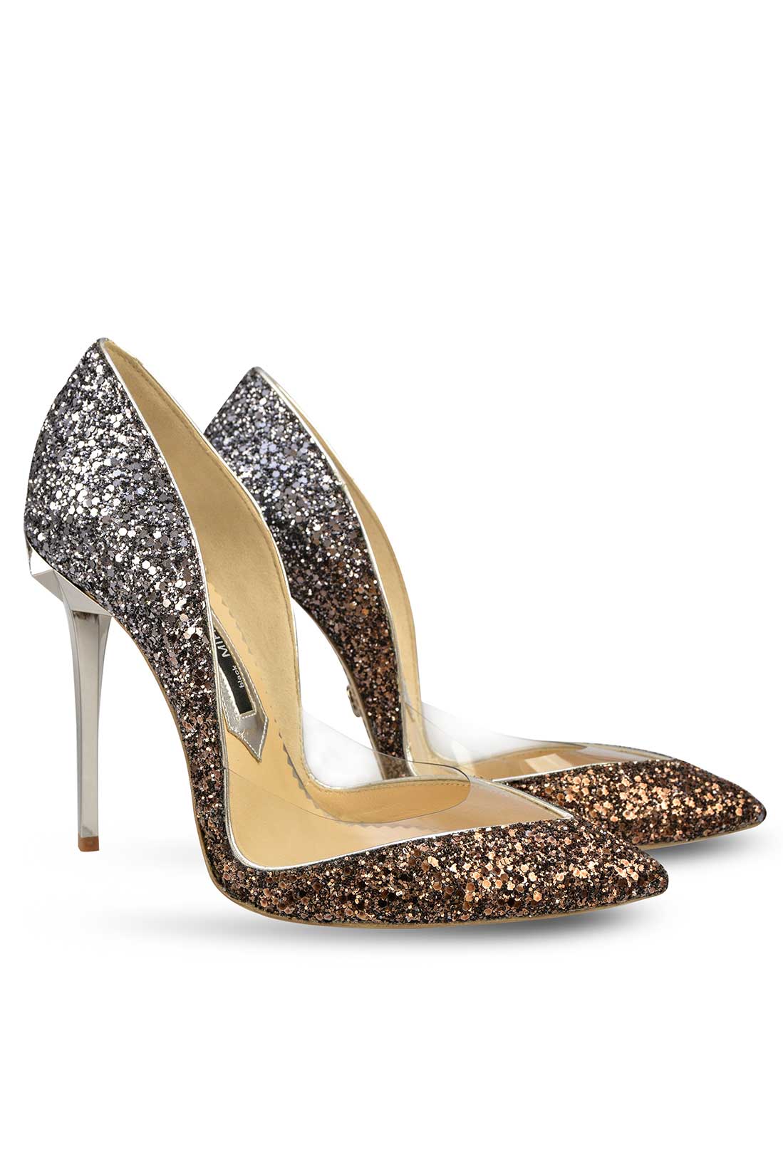 Inspirați din piatra prețioasă multicoloră găsită în Andaluzia și folosită la însemnele monarhiei europene, pantofii cu glitter andaluzit sunt un simbol al glamourului suveran.