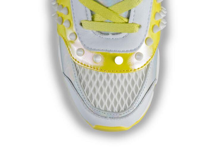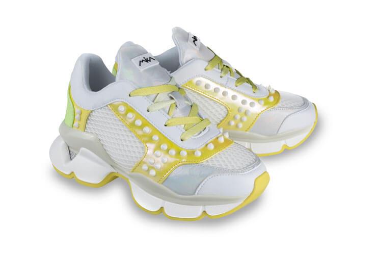 Paleta optimistă de culori, pigmentate de logo-ul MIKA, șireturile și țintele contrastante, duc modelul în zona avangardistă de design.