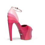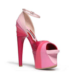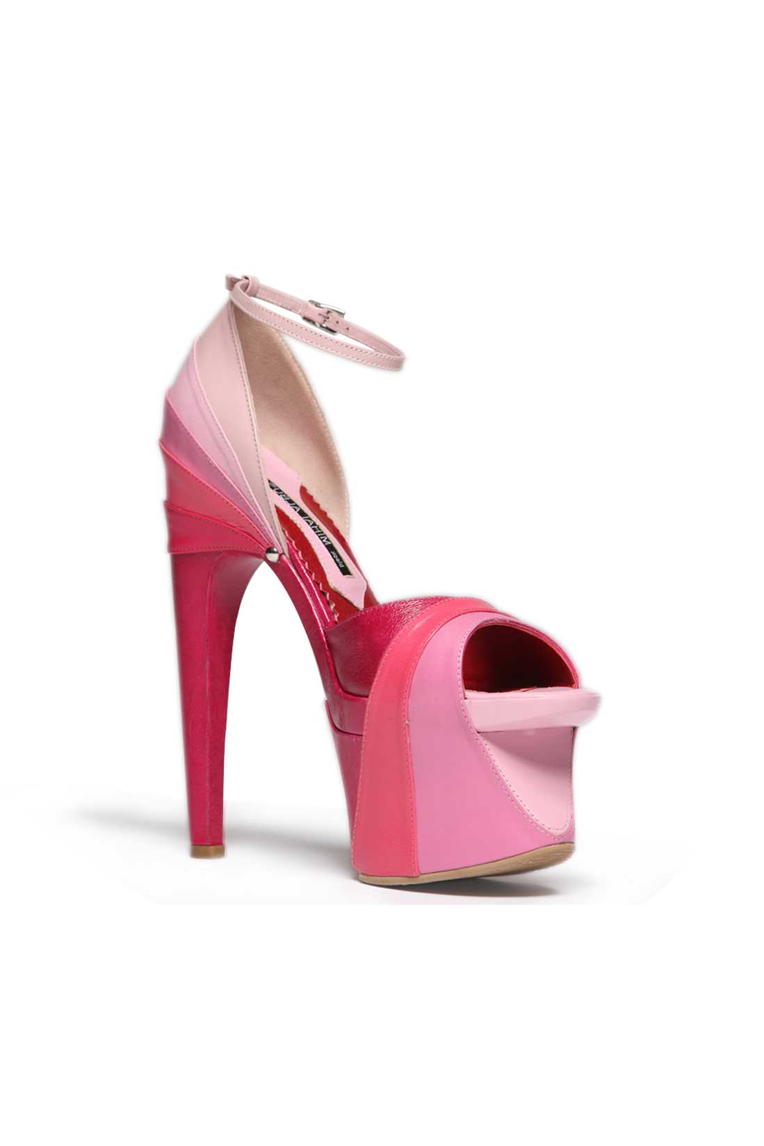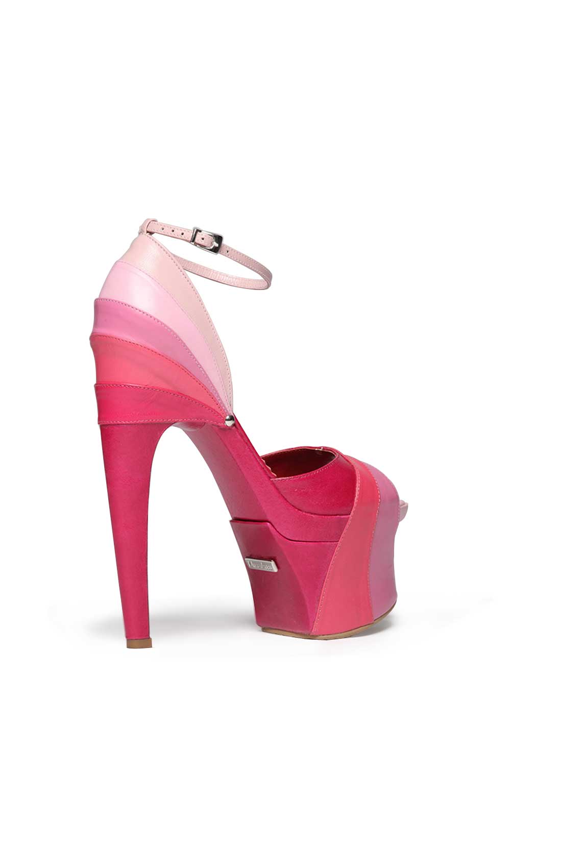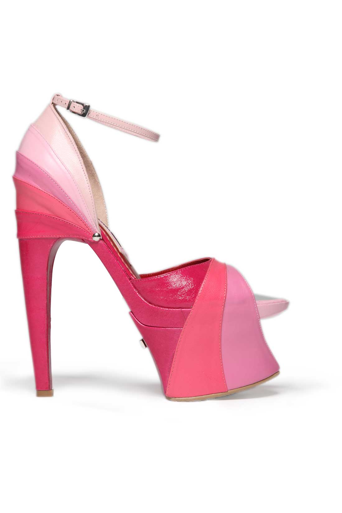 O baretă șic pe gleznă și un ștaif confortabil creează forma unui acoperiș retractabil retro, îmbrâcând piciorul într-un caleidoscop roz.