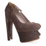 Un bombeu clasic, mângâie piciorul pe un branț din piele, echilibrându-se pe o platformă cu baza rotunjită, oferind mai multă flexibilitate și elevând simțurile.