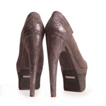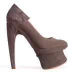 Un stiletto impresionant de 175mm, cu o geometrie curbată, se îmbină cu o platformă stabilă,pe o talpă exterioară din tunit.