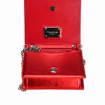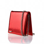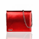 Amintirile tale sunt ca o cameră a pasiunii. Păstrează-le în geanta de mână din piele, cu clapă pe toată lungimea și forme dreptunghiulare, în roșu vibrant metalizat.