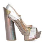 „Arhitectura unui pantof are puterea de a-ți elibera mintea.â€? Pantofii din piele cu platformă și motive mozaice reflectorizante sunt centrul tău personal de prosperitate.