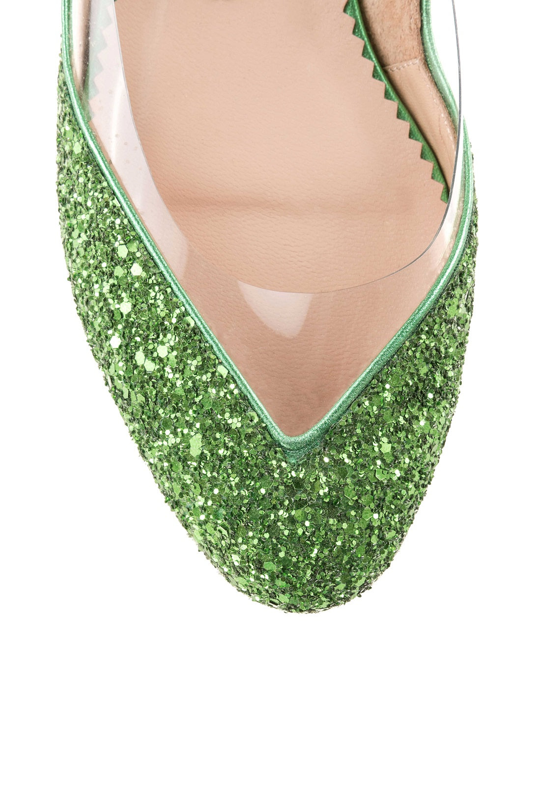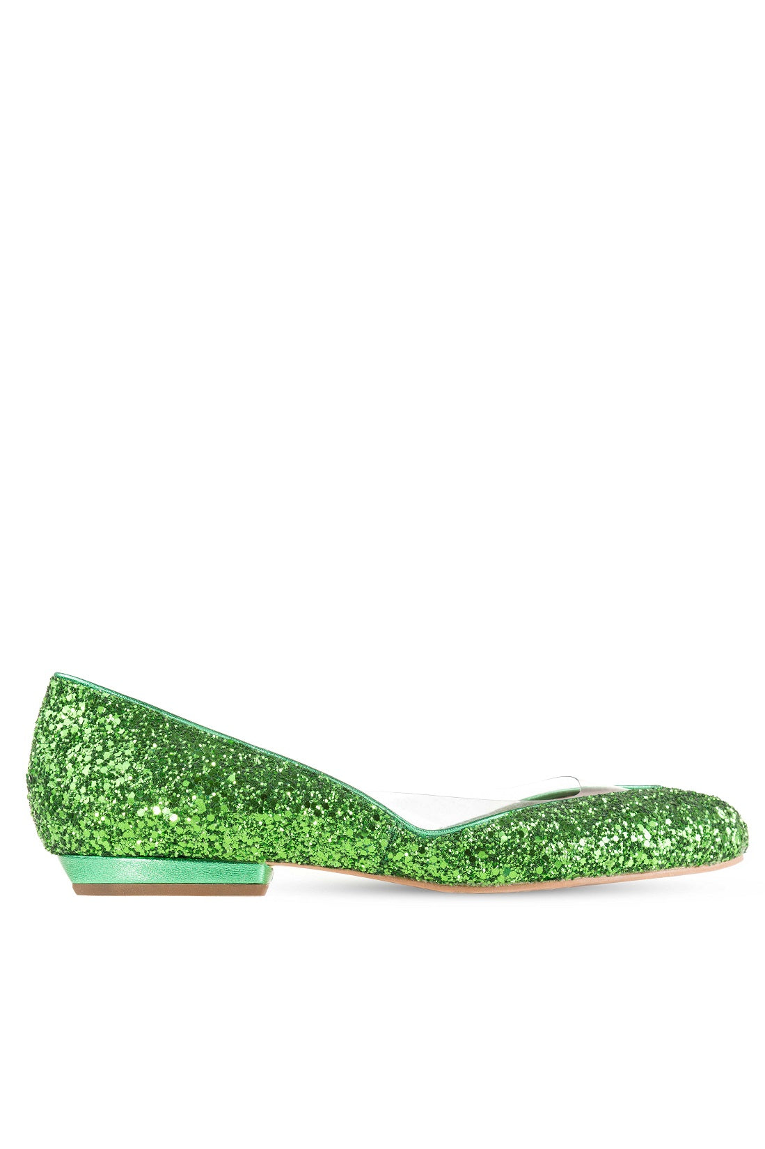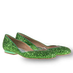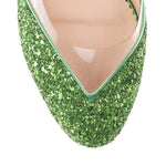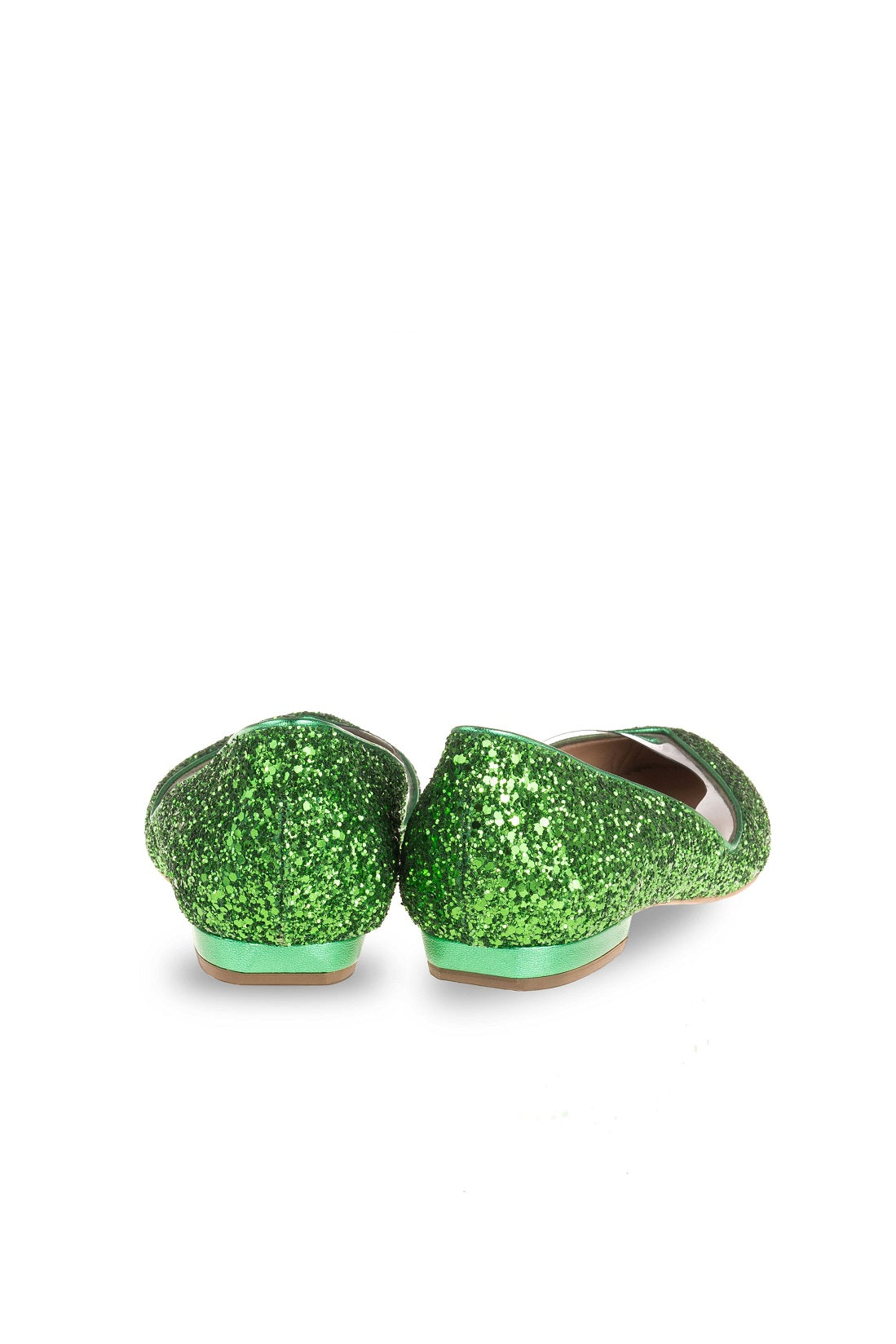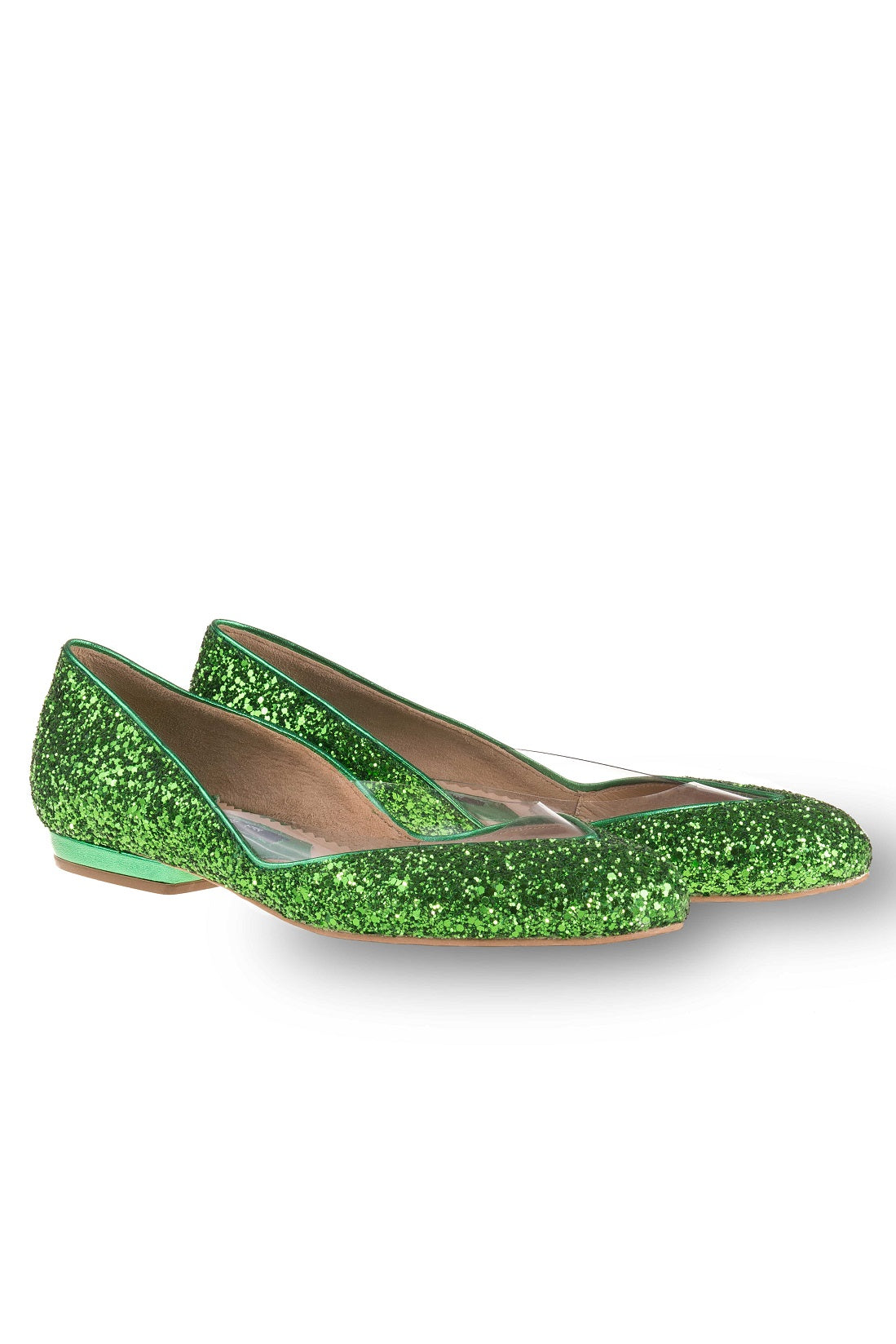 Balerinii cu glitter decorativ de culoarea smaraldului și un decupaj ultra transparent, te fac să simți că pășești comod pe un piedestal de o strălucire tinerească atemporală.
