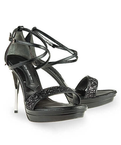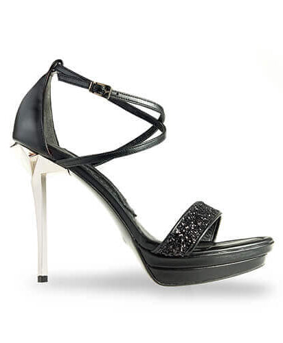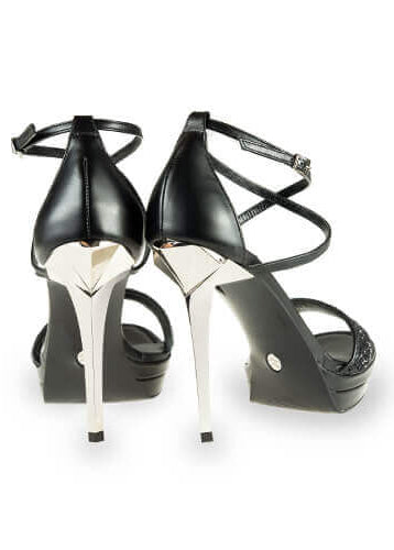Inspirate din legendele din Transilvania, sandalele din piele neagră cu un stiletto extravagant care te transformă într-o driadă a nopții.
