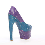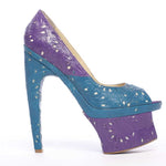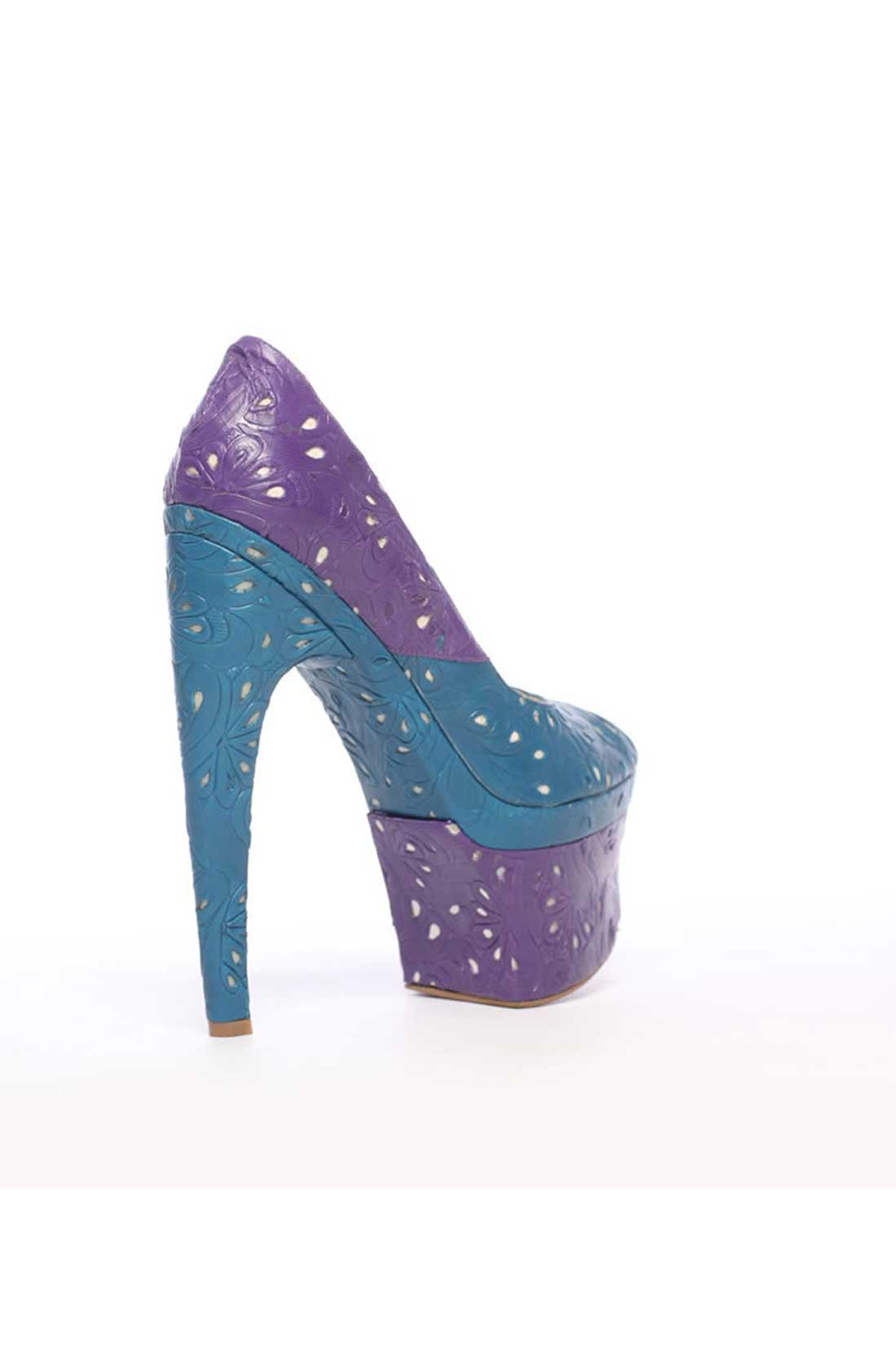 Un stiletto impresionant de 175mm, cu o geometrie curbată, se îmbină cu o platformă stabilă, pe o talpă exterioară din tunit.
