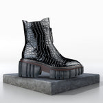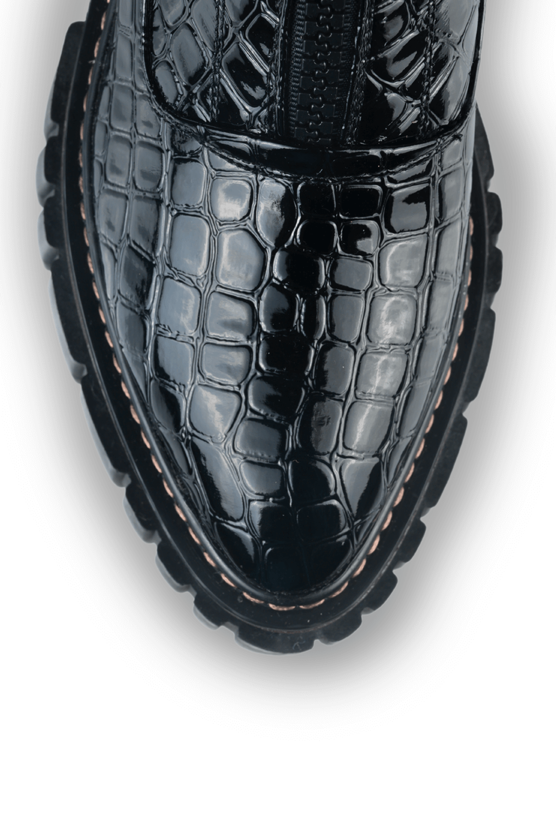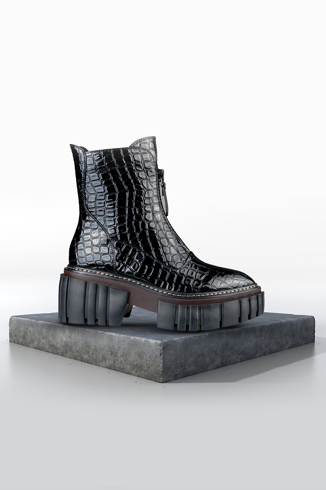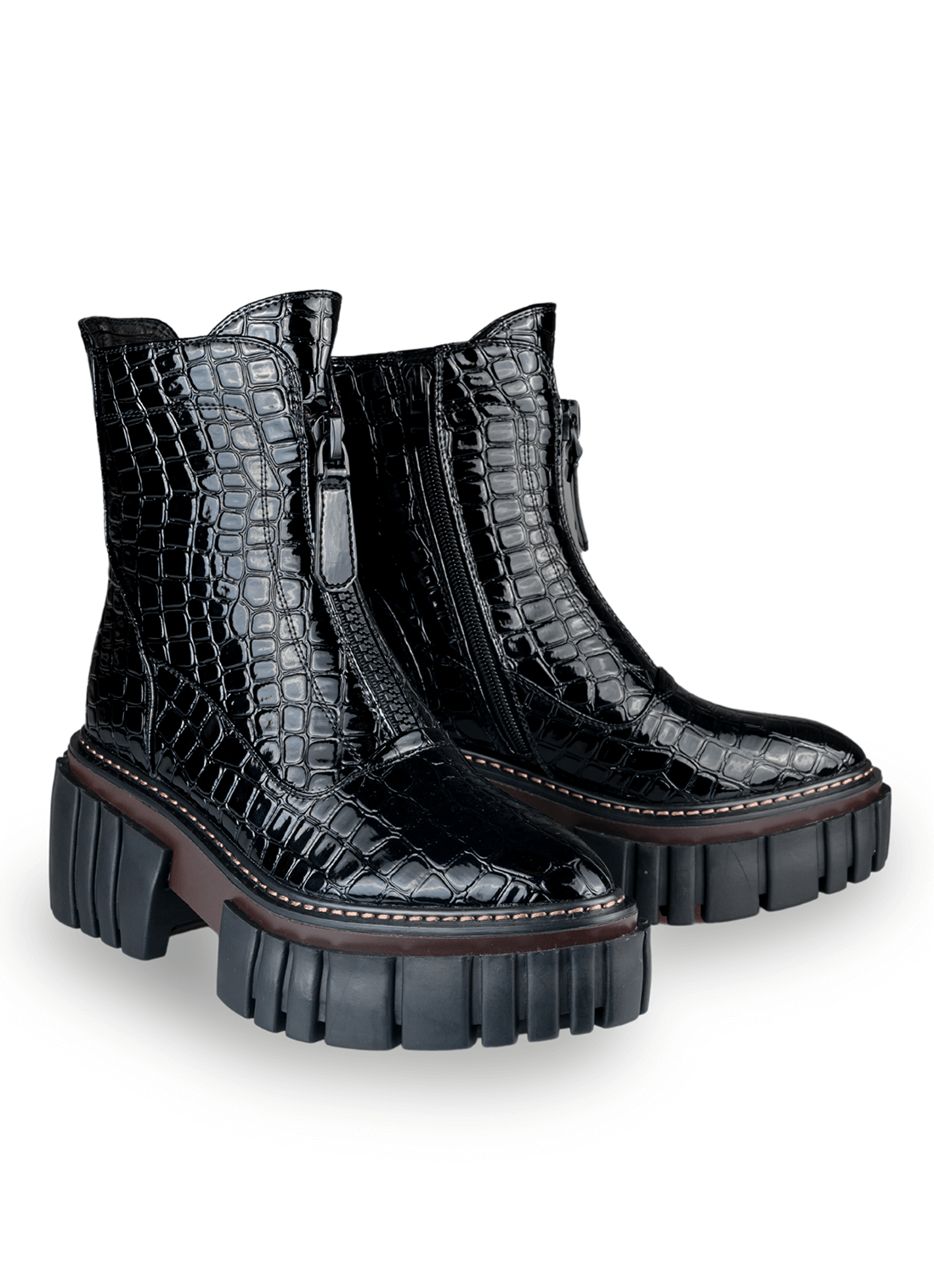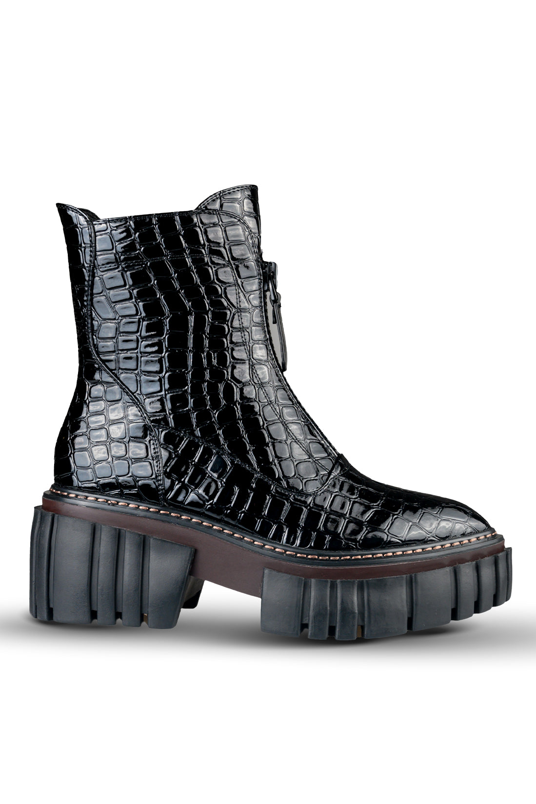 Material: Piele ecologică texturată, fermoar decorativ, talpă canelată