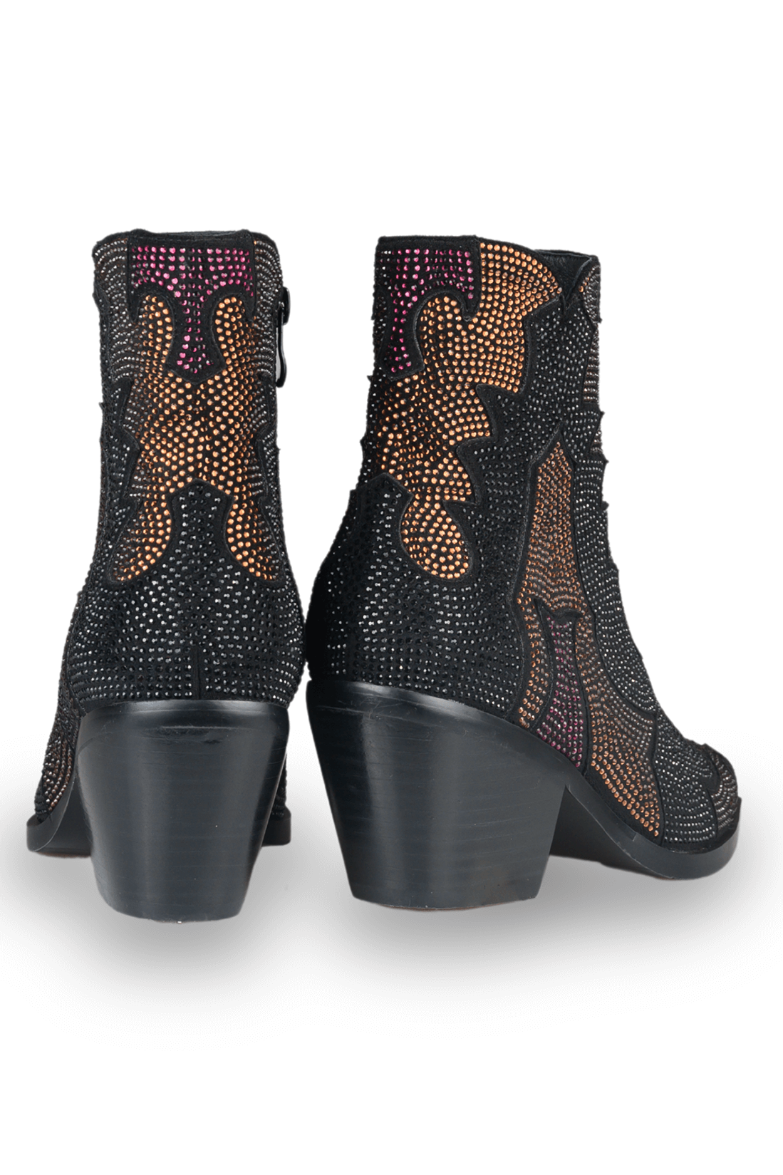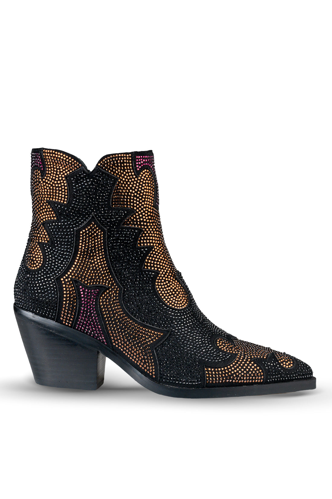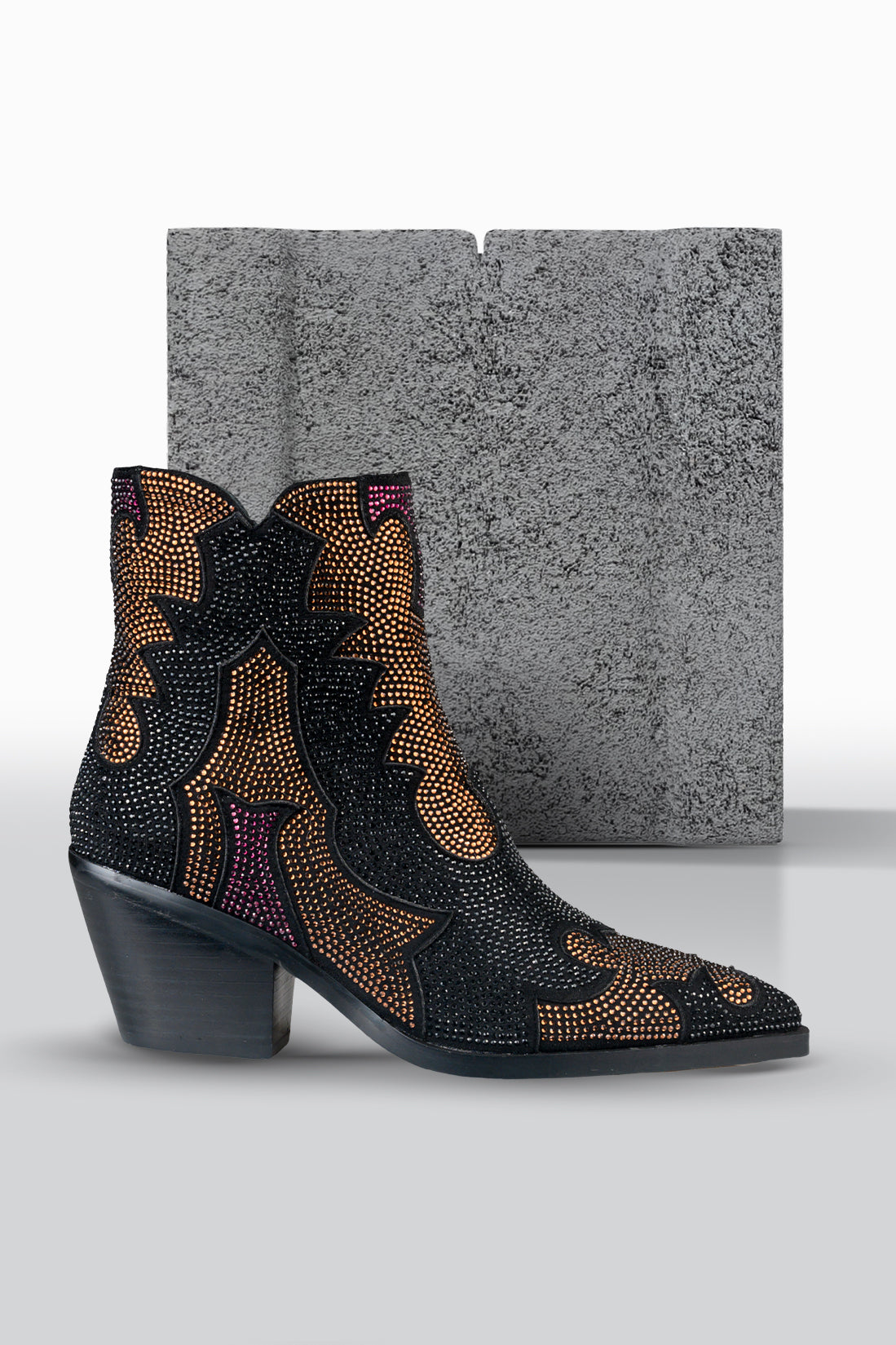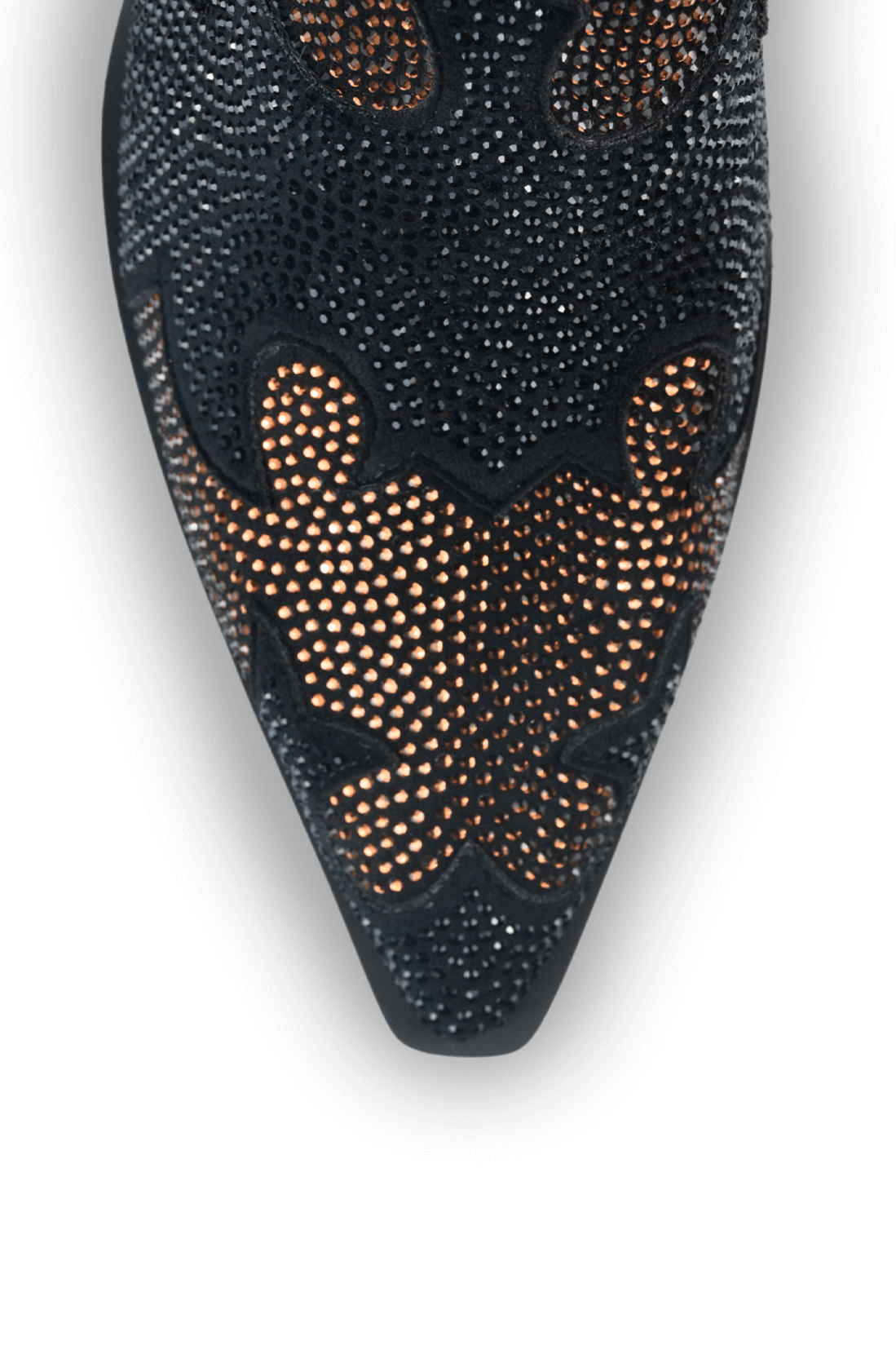 Clasic nu e niciodată plictisitor atunci când îi dai o nouă interpretare. Ghetele western nu se demodează - cu aplicații de cristale peste catifea fină, ai strălucirea la picioare cu fiecare ținută. Go wild. Go wild wild West!