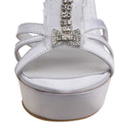 Sandalele brodate cu dantelă și motive de cristal, montate pe o platformă seducătoare, recreează un spectacol unic à la Moulin Rouge, special pentru mireasa fără inhibiții.