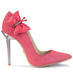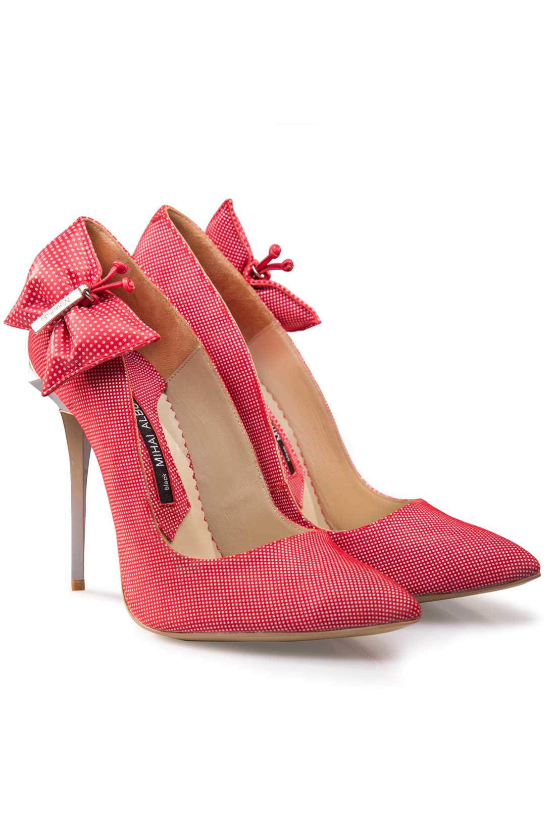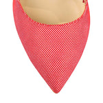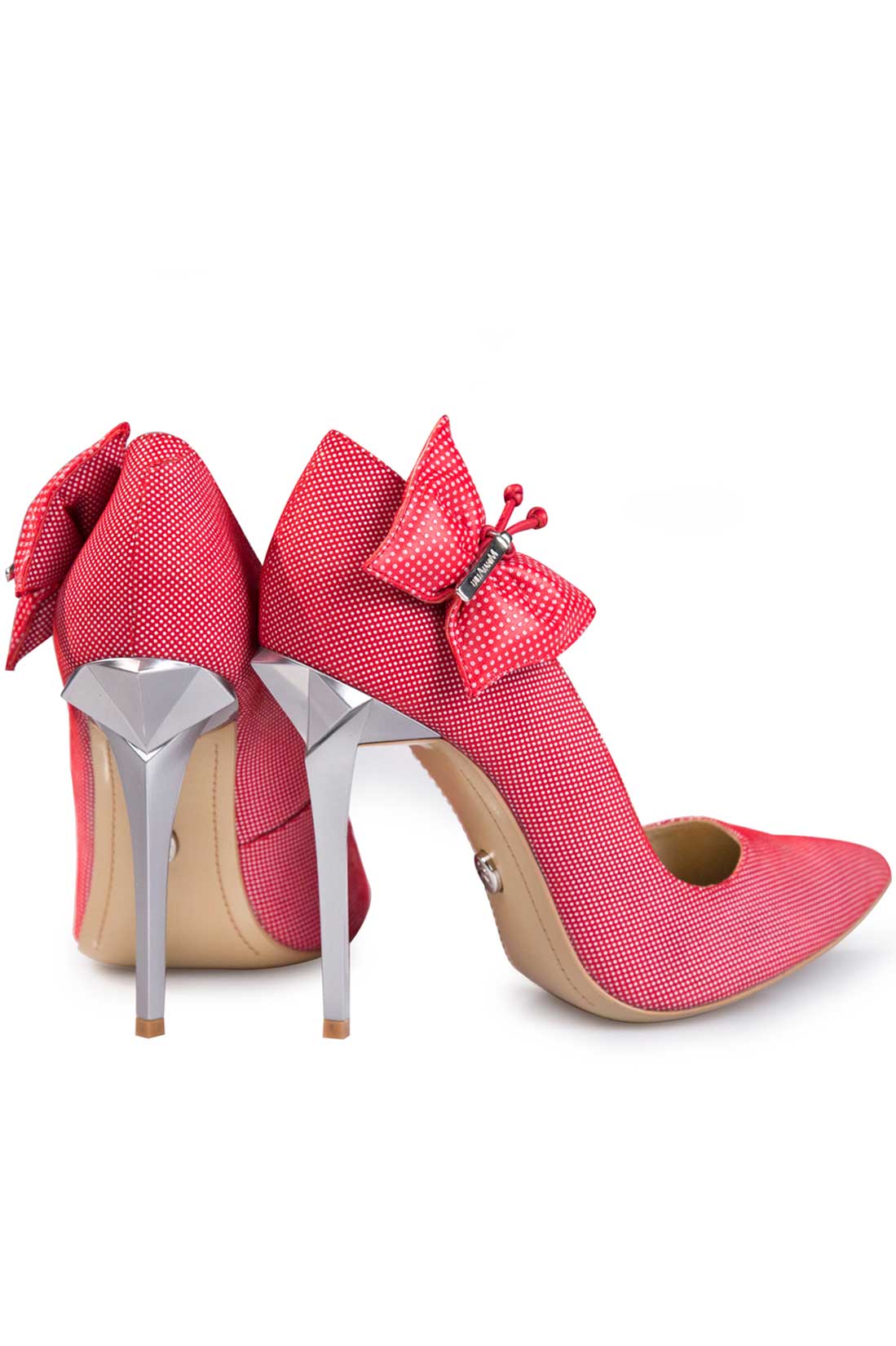 Trăiește o senzație energizantă prin combinația ludică de roz brink și puncte polka clasice în pantofii de piele, sculptați pe un stiletto extravagant.