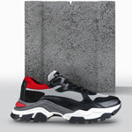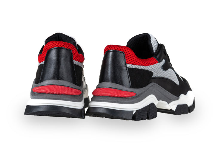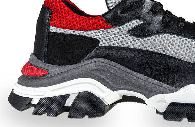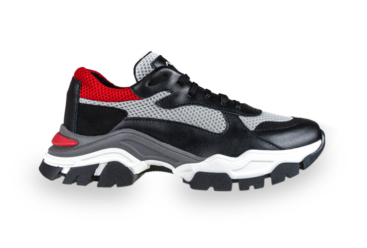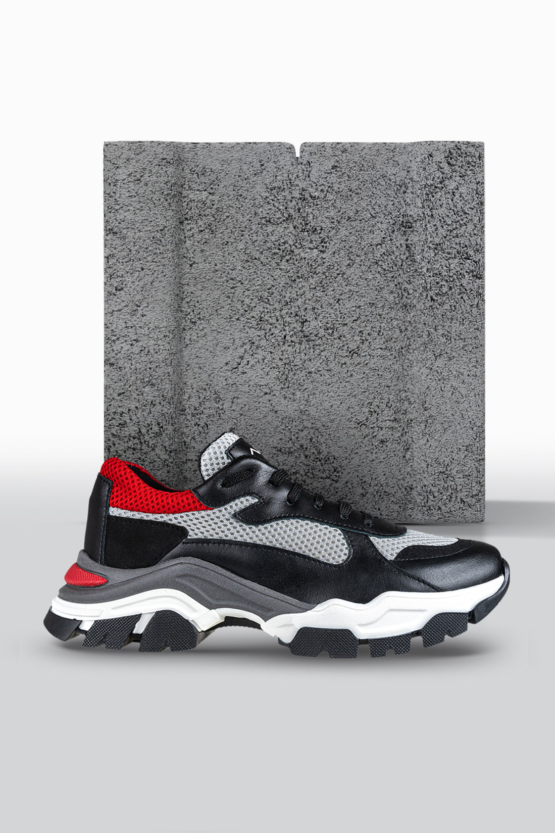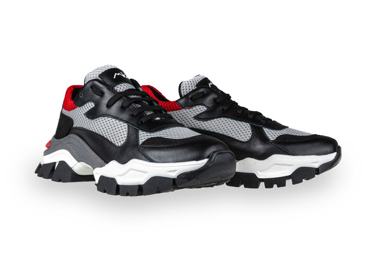 Fabricați din piele naturală și material sintetic în culorile negru, gri și roșu, sneakerșii Raven au un design atrăgător, marcat de sigla MIKA plasată pe limba pantofului.