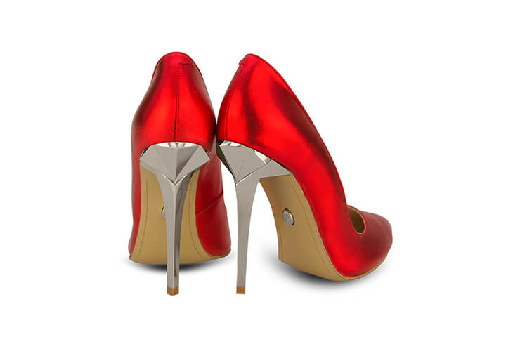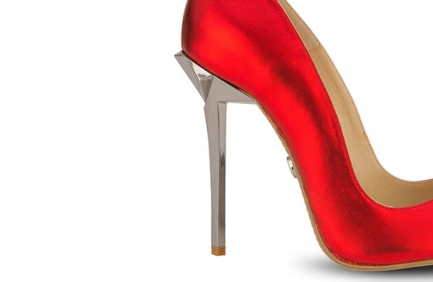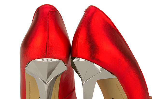 Atunci când arhitectura urbană modernă se îmbină cu bijuteriile Coroanei Britanice, obții pantofii din piele semnați de Mihai Albu, infuzați cu roșu de monarh.