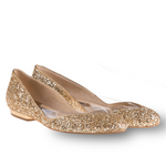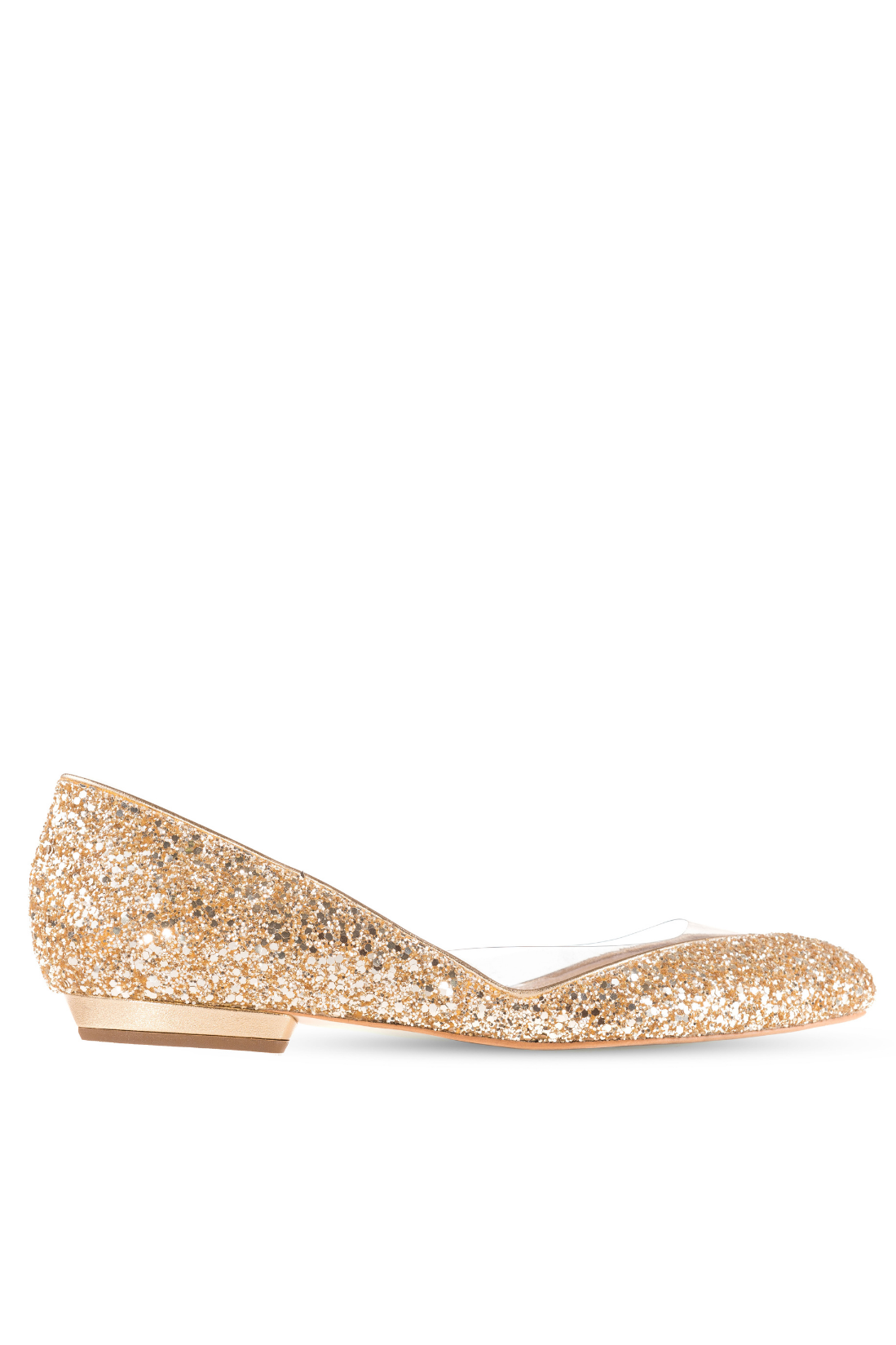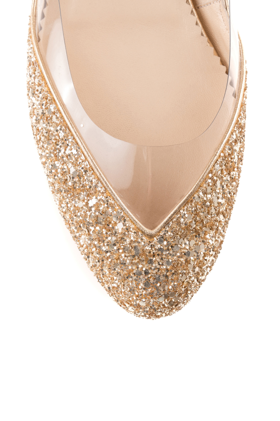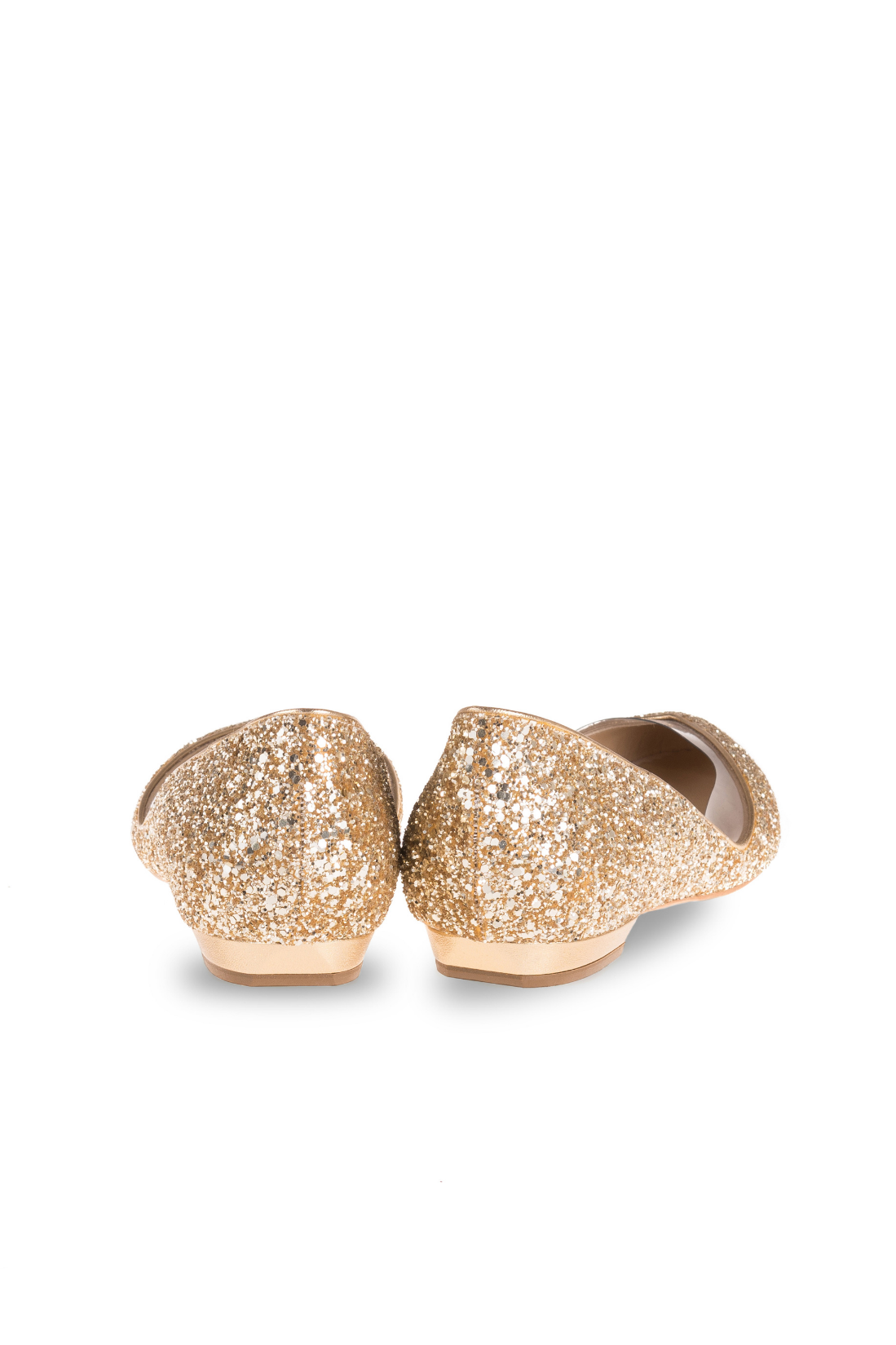 Balerinii cu glitter auriu și un decupaj ultratransparent te fac să simți că pășești în propriul tău temple de strălucire și spiritualitate.