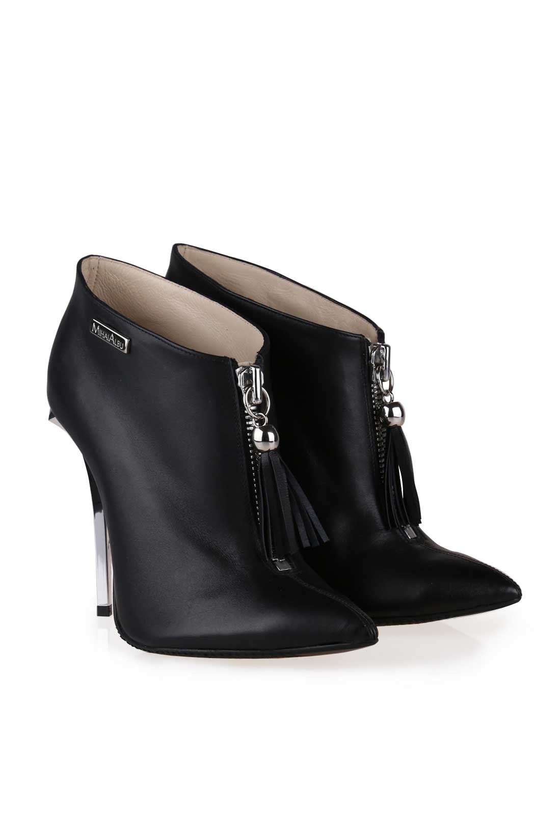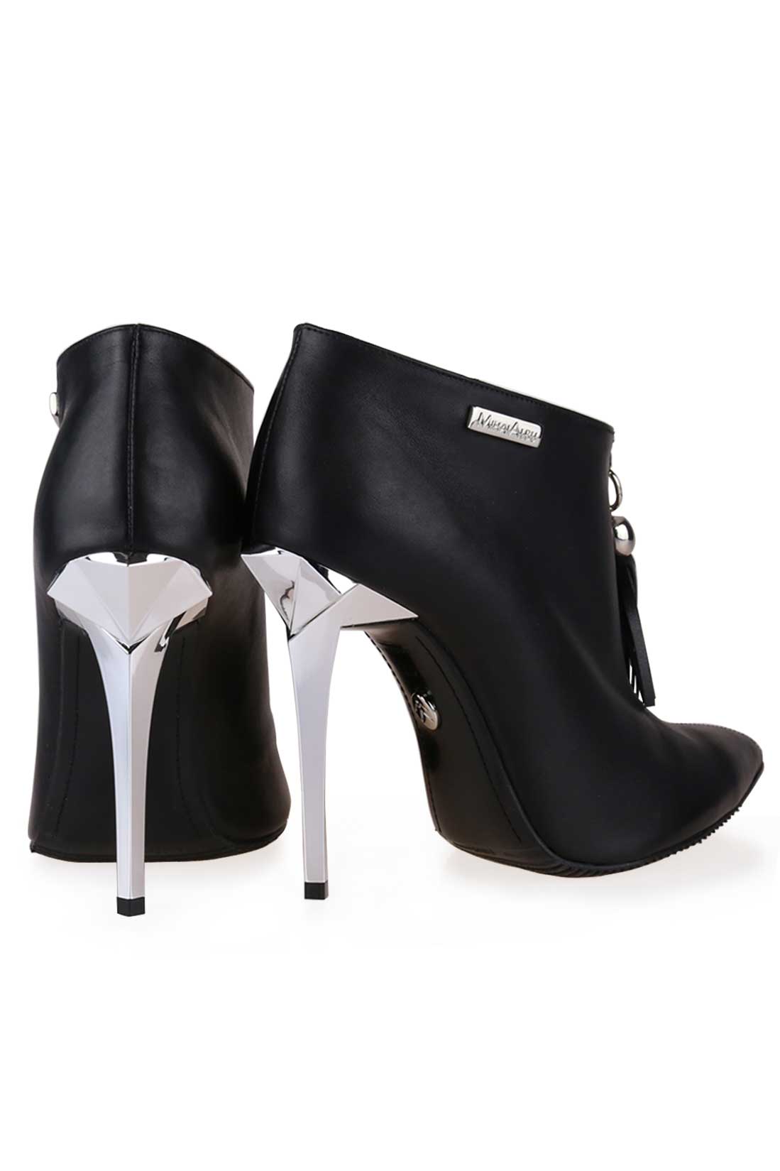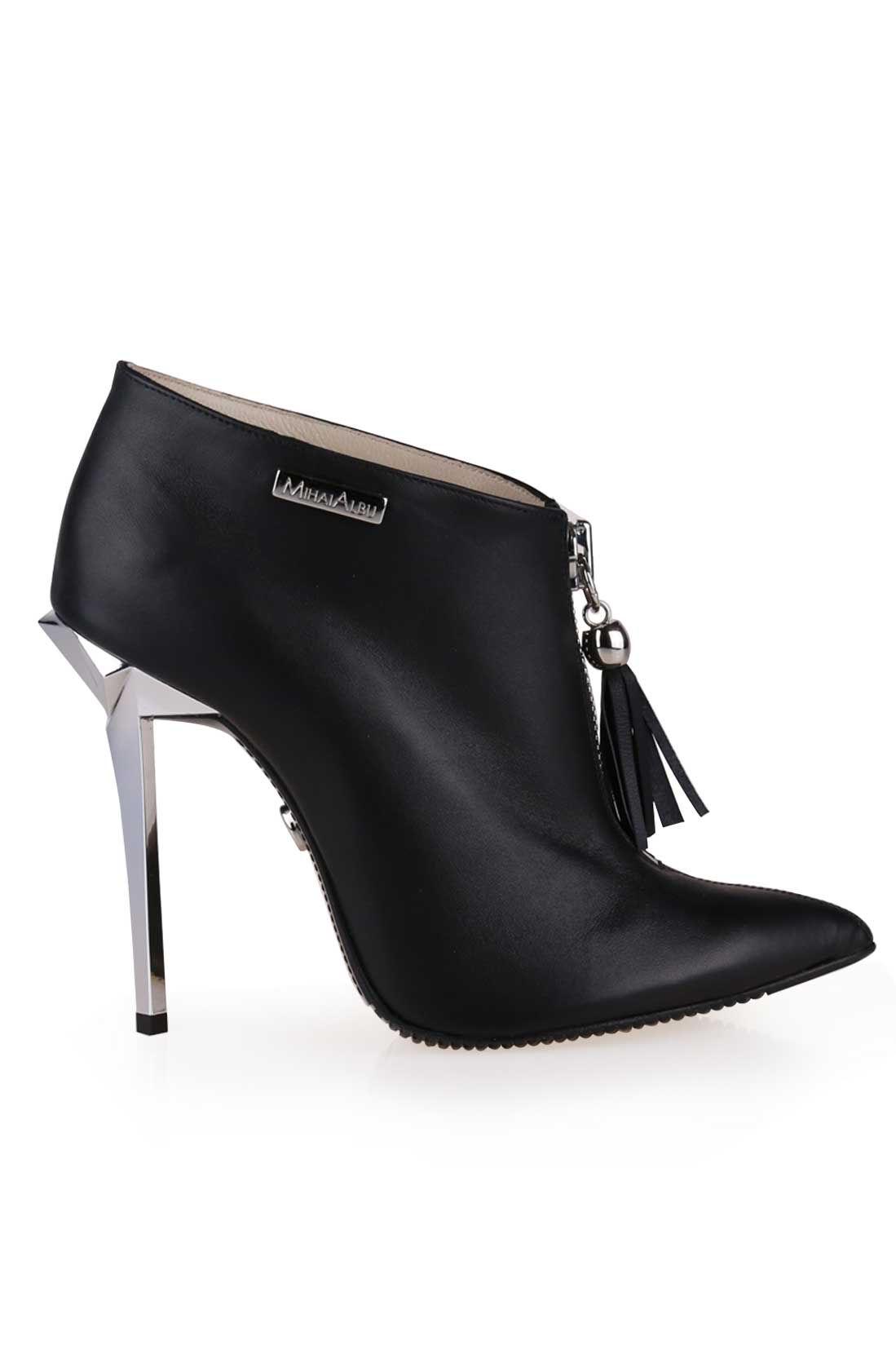 Botinele clasice din piele neagră, montate pe stiletto-uri extravagante, evocă silueta și strălucirea cizmelor americane din anii '20. Vintage dar totuși contemporane!