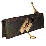 Trei plachete aurii metalizate tip oglindă formează o fațadă deluxe alături de clema cu două vârfuri care se prinde în închizătoarea în formă de M. Înălțime: 12cm