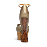 Un stiletto impresionant de 175mm, cu o culoare sobră din stilul baroc, se îmbină cu o platformă stabilă, pe o talpă exterioară din tunit.