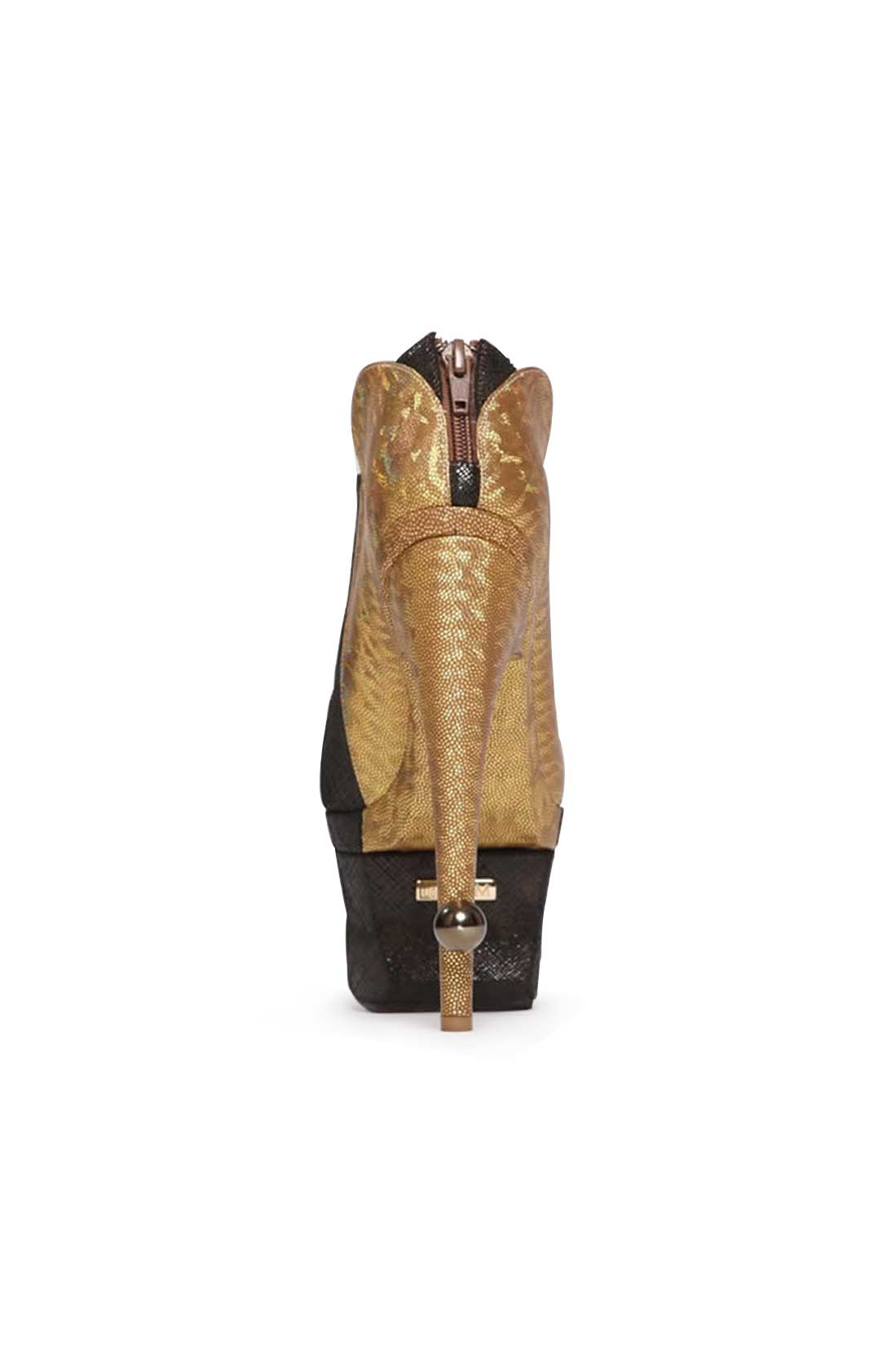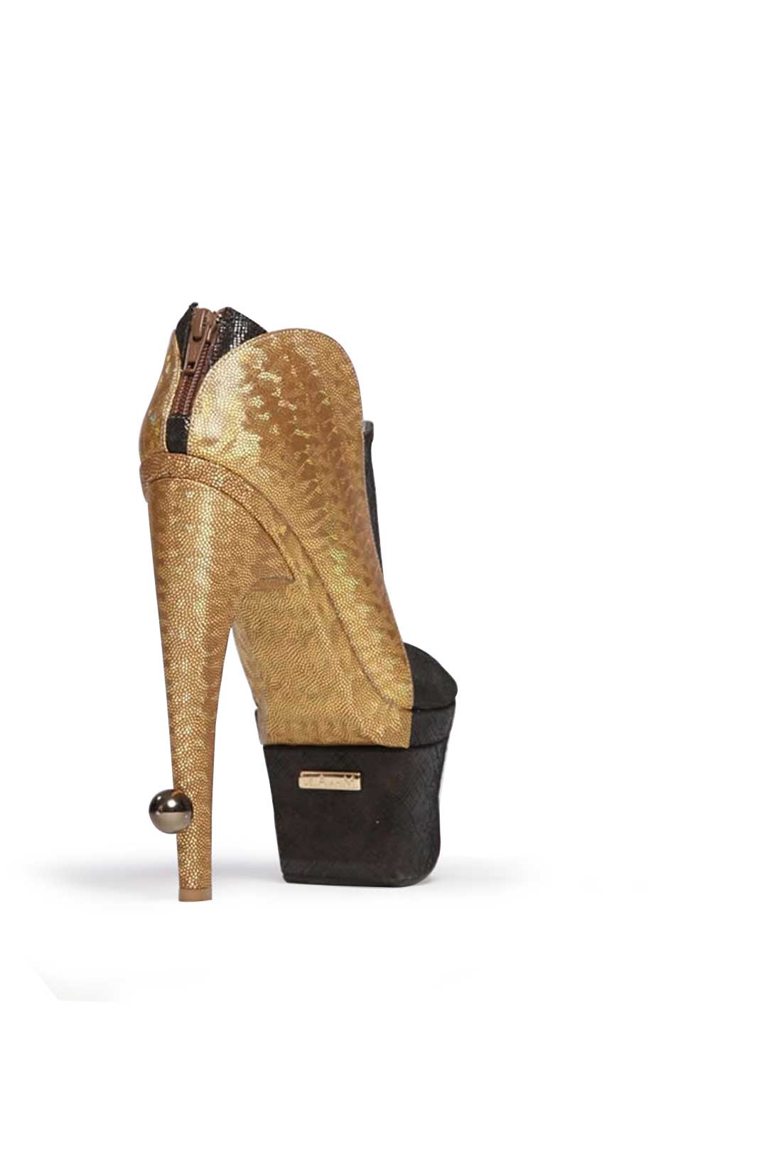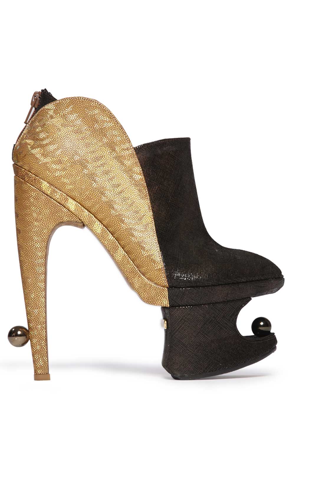 „Un pantof este ca un teatru de operă – cu fațade sclipitoare, lumini timide și un podium impozant.â€? Pășește în Franța anilor 1900 cu botinele din piele cu platformă.